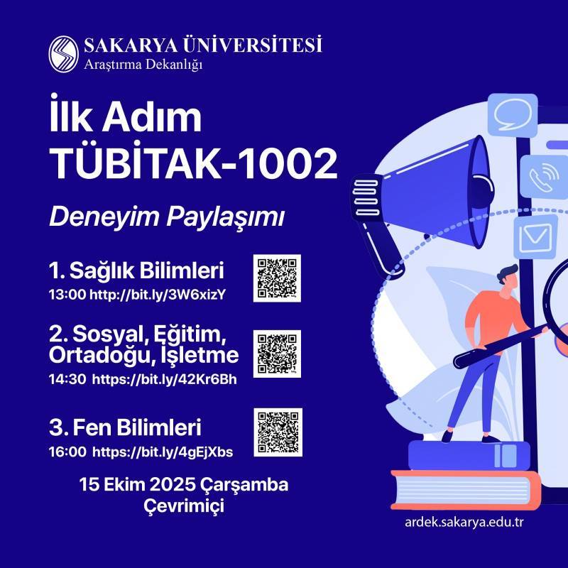 15 Ekim Çarşamba günü çevrimiçi gerçekleşecek TÜBİTAK-1002 Deneyim Paylaşımı etkinliğine ait afiş ekte sunulmaktadır.