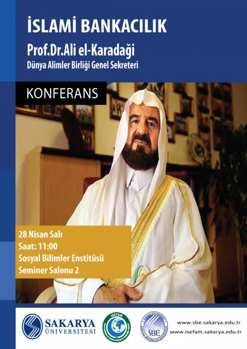 28 Nisan Salı günü Dünya Alimler Birliği Genel Sekreteri Prof. Dr. Ali el-Karadâğî tarafından "İslami Bankacılık" konulu bir konferans verilecektir.